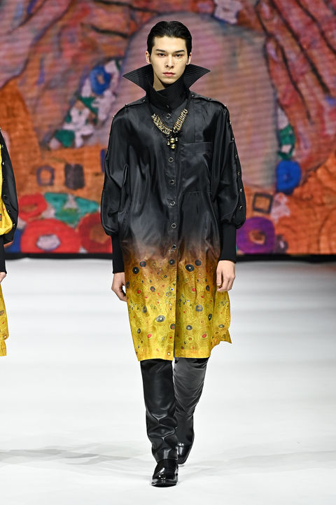 LIE SANGBONG's 23 Fall and Winter Collection marked a fashion transformation by seamlessly merging the artistry of Gustav Klimt with fashion, thanks to a collaboration with the Belvedere Museum in Austria. This collection skillfully incorporated the eroticism, vibrant colors, and intricate lines of Klimt's artworks into LIE SANGBONG's couture-style techniques and patterns. The outcome was a captivating collection that celebrated artistic craftsmanship, blurring the boundaries between art and fashion.